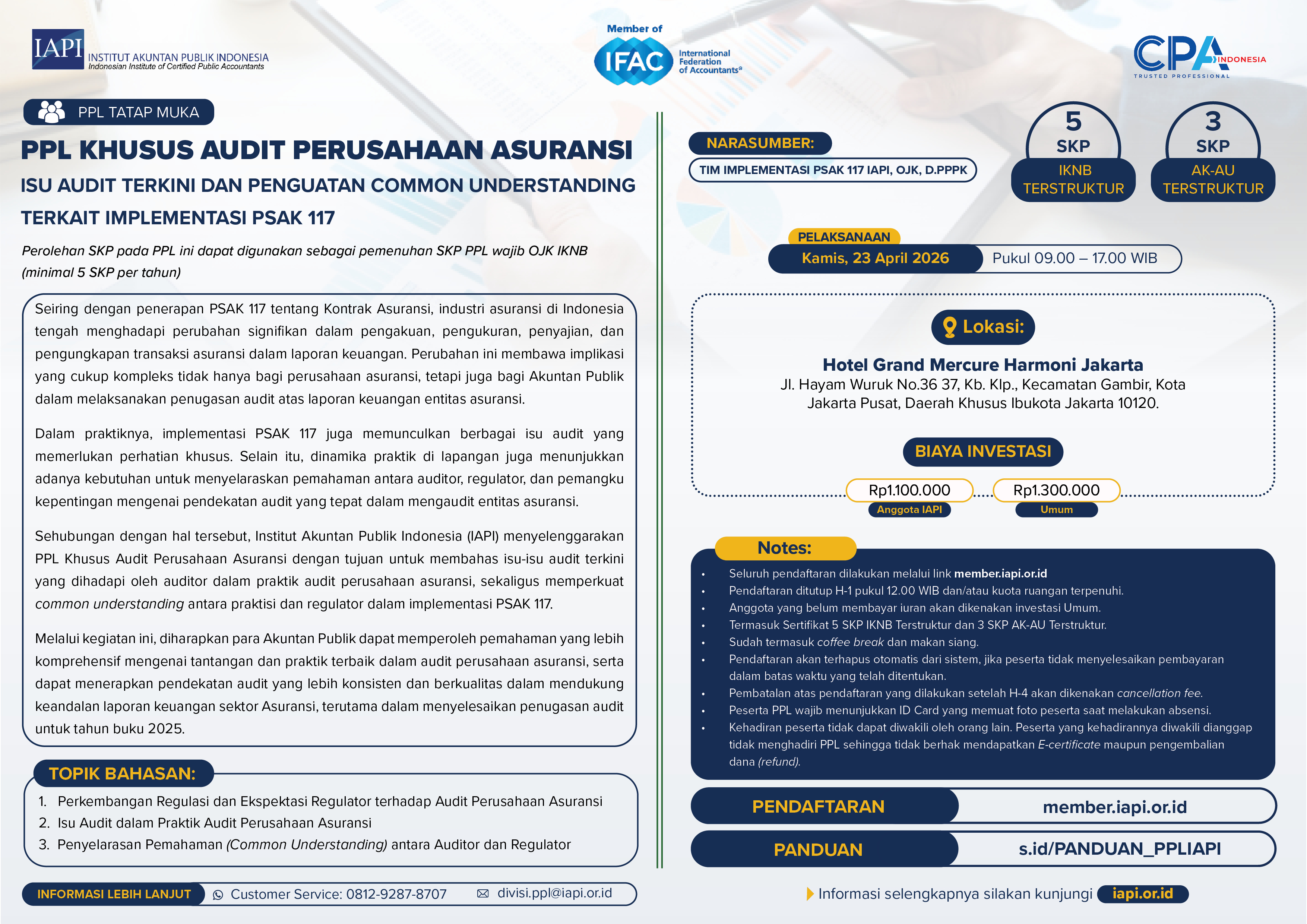 PPL KHUSUS AUDIT PERUSAHAAN ASURANSI ISU AUDIT TERKINI DAN PENGUATAN COMMON UNDERSTANDING TERKAIT IMPLEMENTASI PSAK 117