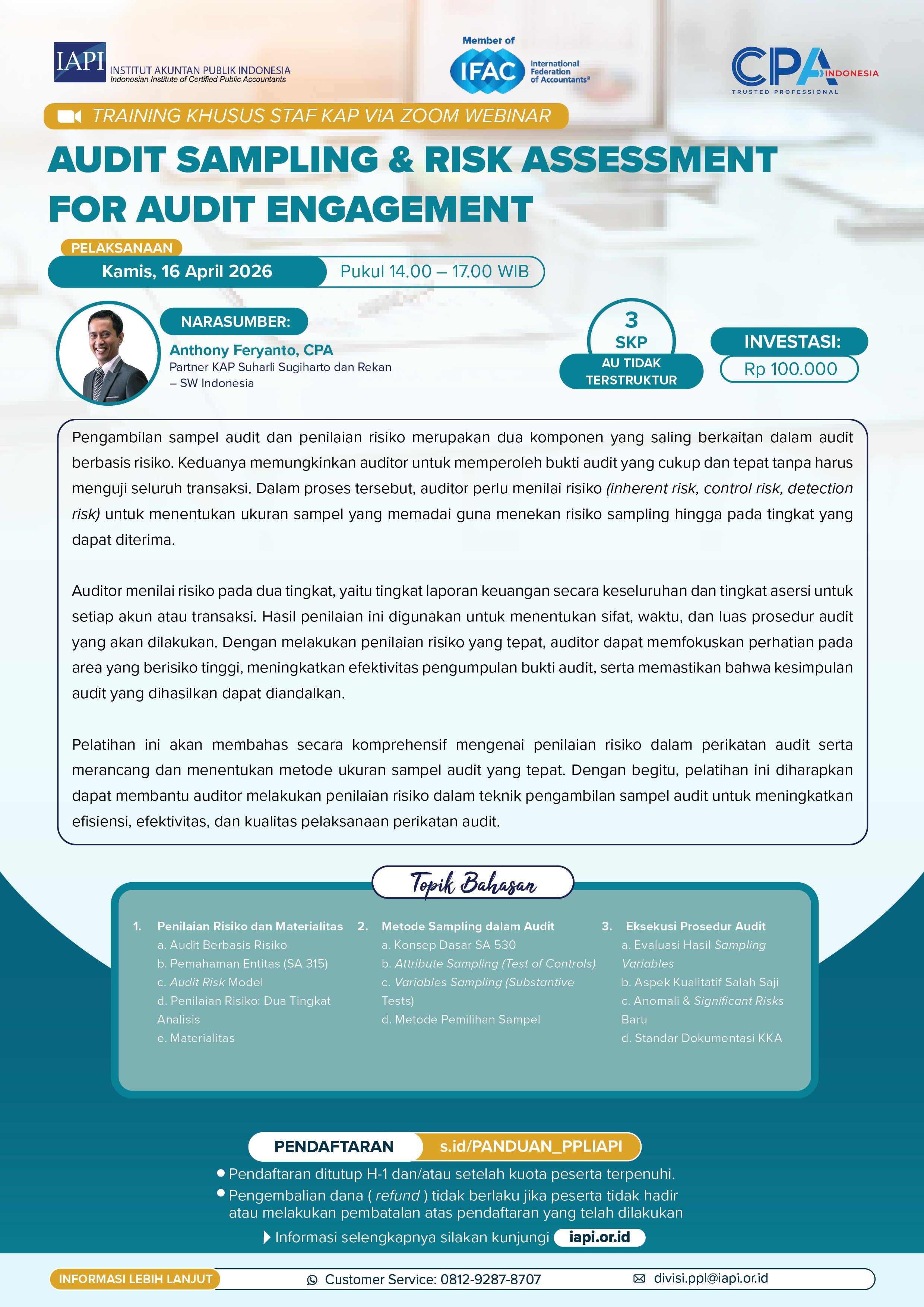 PPL KHUSUS STAF: AUDIT SAMPLING & RISK ASSESSMENT FOR AUDIT ENGAGEMENT
