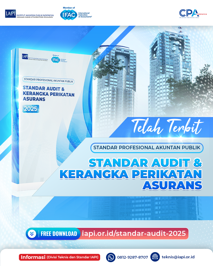 Dewan Standar Profesional Akuntan Publik I (DSPAP I) – Institut Akuntan Publik Indonesia (IAPI) telah menyusun, menyetujui, dan menetapkan Standar Audit (SA), Kerangka Perikatan Asurans, Standar Perikatan Reviu (SPR), Standar Perikatan Asurans (SPA), dan Standar Jasa Terkait (SJT). Standar ini mengacu pada International Standards on Auditing (ISA), International Standards on Review Engagements (ISRE), International Standards on Assurance Engagements (ISAE), International Standards on Related Services (ISRS) sebagaimana yang tercantum pada Handbook of International Quality Management, Auditing, Review, Other Assurance and Related Services Pronouncements – 2023-2024 Edition (“Handbook”) yang diterbitkan oleh The International Auditing and Assurance Standards Board (IAASB) – International Federation of Accountants (IFAC).